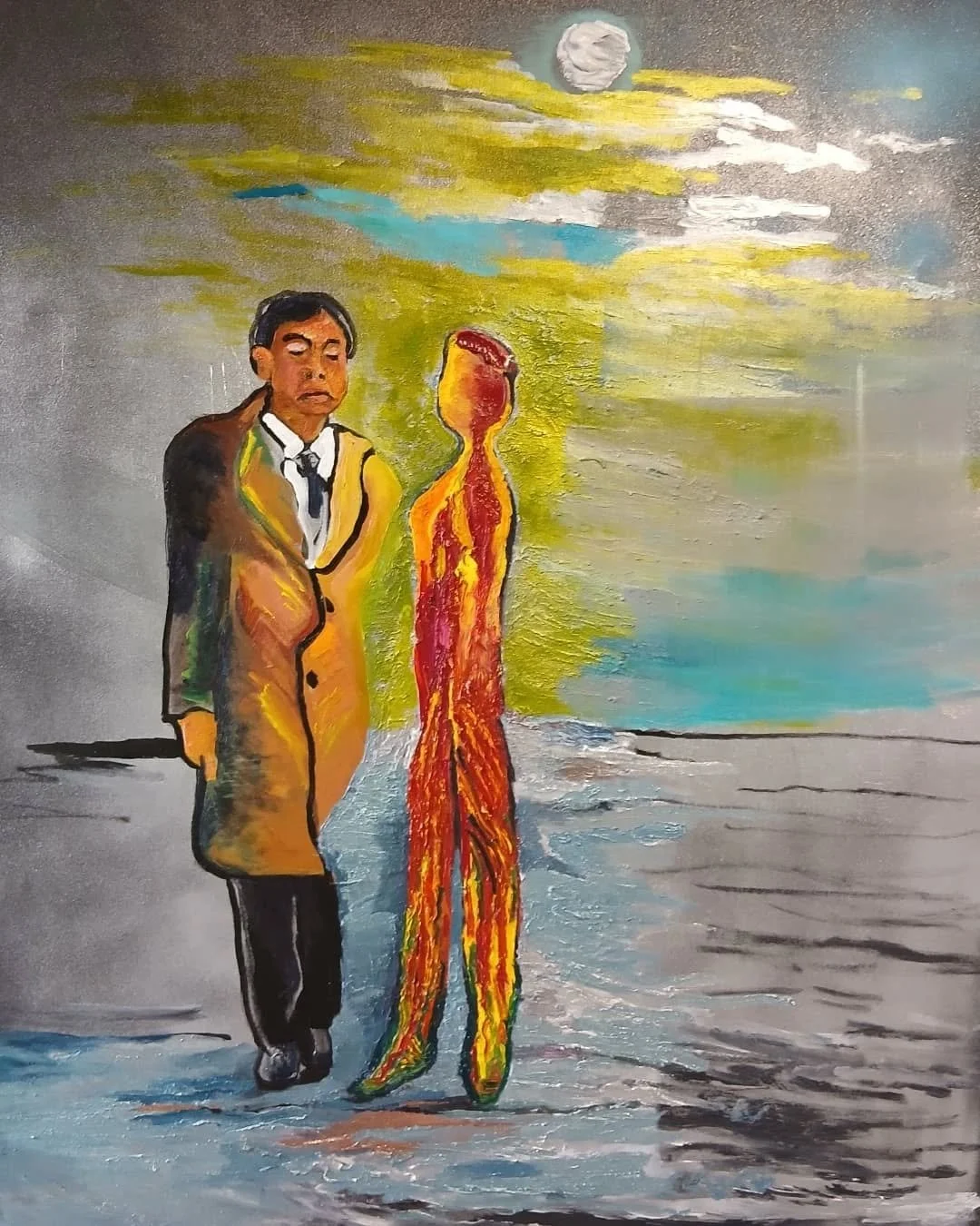 This painting is inspired on a documentary that I saw about Sugar Babies and their Daddies. What struck me was that those Daddies treat their partners as lower beings, with I pay and I decide what I want. There was one founder of a Sugar Baby website, who made it clear that he was allowed to cheat, while she had to be faithful or a Lord Slade who was 72 and said he was ready for children and was searching for a woman to give birth to the 2 sons he wanted. He found a 38 year old woman from Romania, but made it clear by showing her photos of his exes, that he was still searching and hasn't made a decision yet, who he will marry.